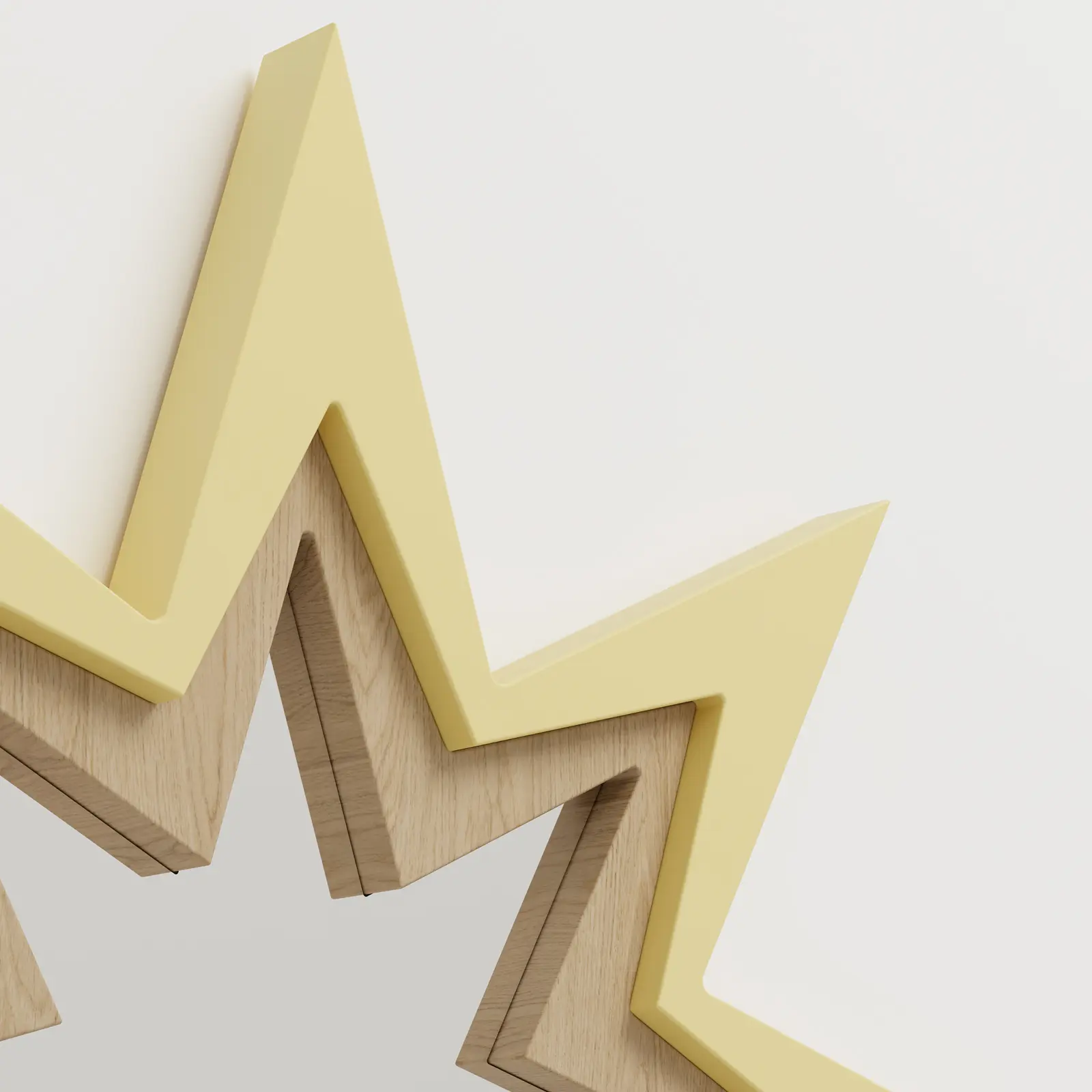STAR ist ein skulpturales Wandobjekt. Die überlagerten Sternformen – zweifarbig oder mit massiver Eiche kombiniert – erzeugen durch ihre unterschiedliche Höhe eine ausdrucksstarke Tiefenwirkung und machen den Spiegel zum Statement Piece.